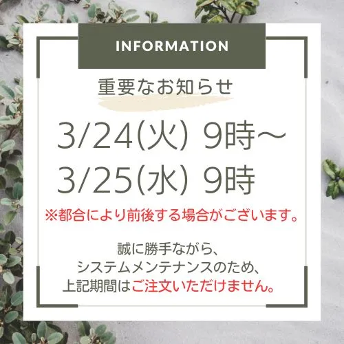 このたび、システムメンテナンス実施に伴い、下記の期間中は弊社オンラインショップページをご利用いただけません。