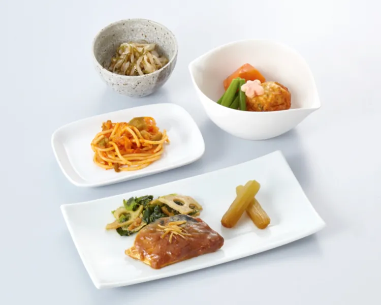 お肉料理とお魚料理をバランスよく取り入れた和風おかずセットです。