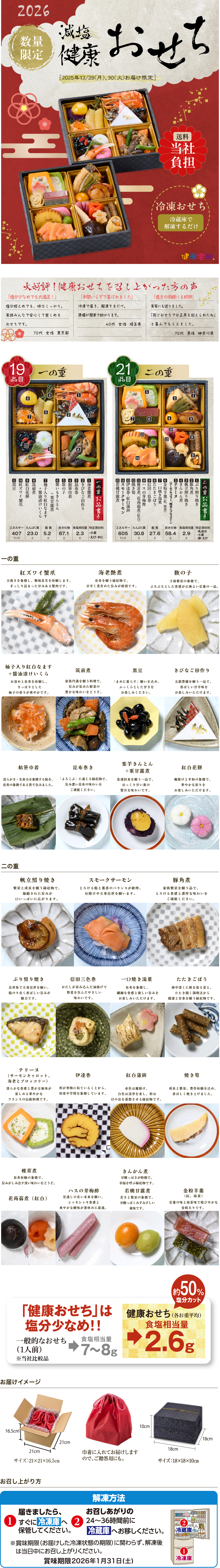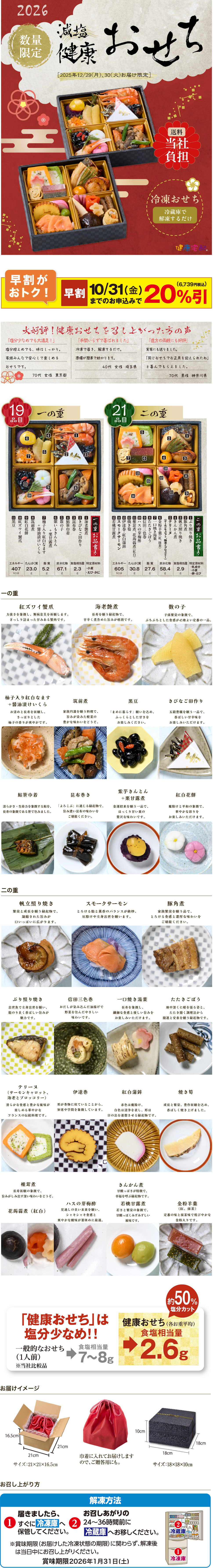 塩分2.6g。各1人前のちょっと豪華なやさしいおせち。